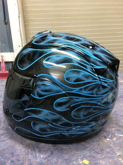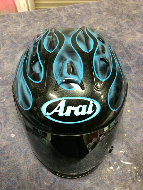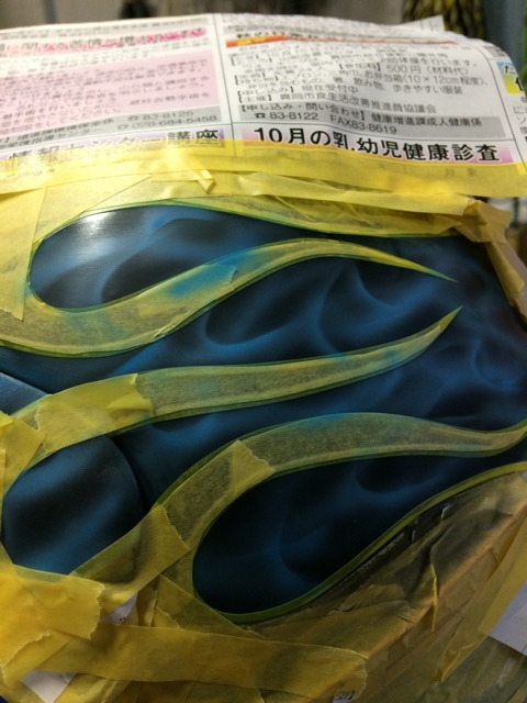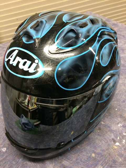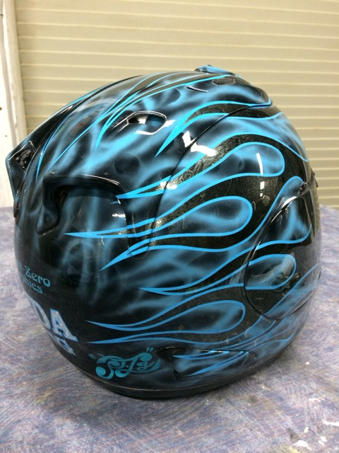 ヘルメット補修続きです。 こうなりました。まあ本来なら買い替えるべきなんですけど、傷が表面だけだったので特別に。