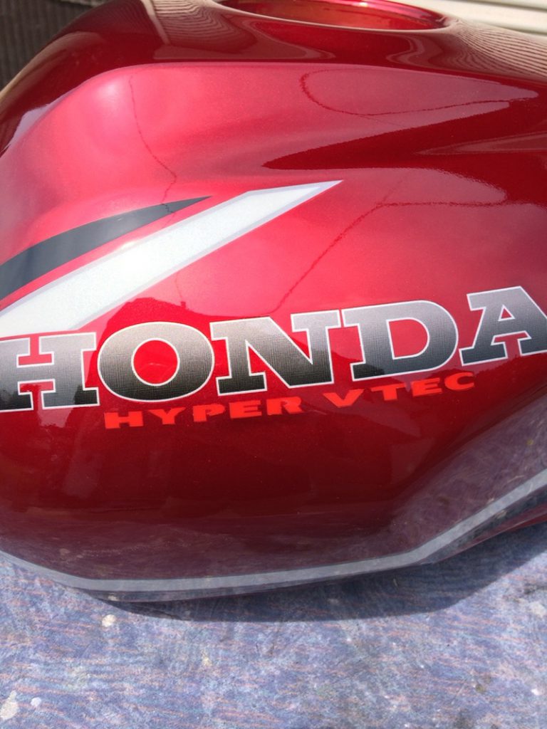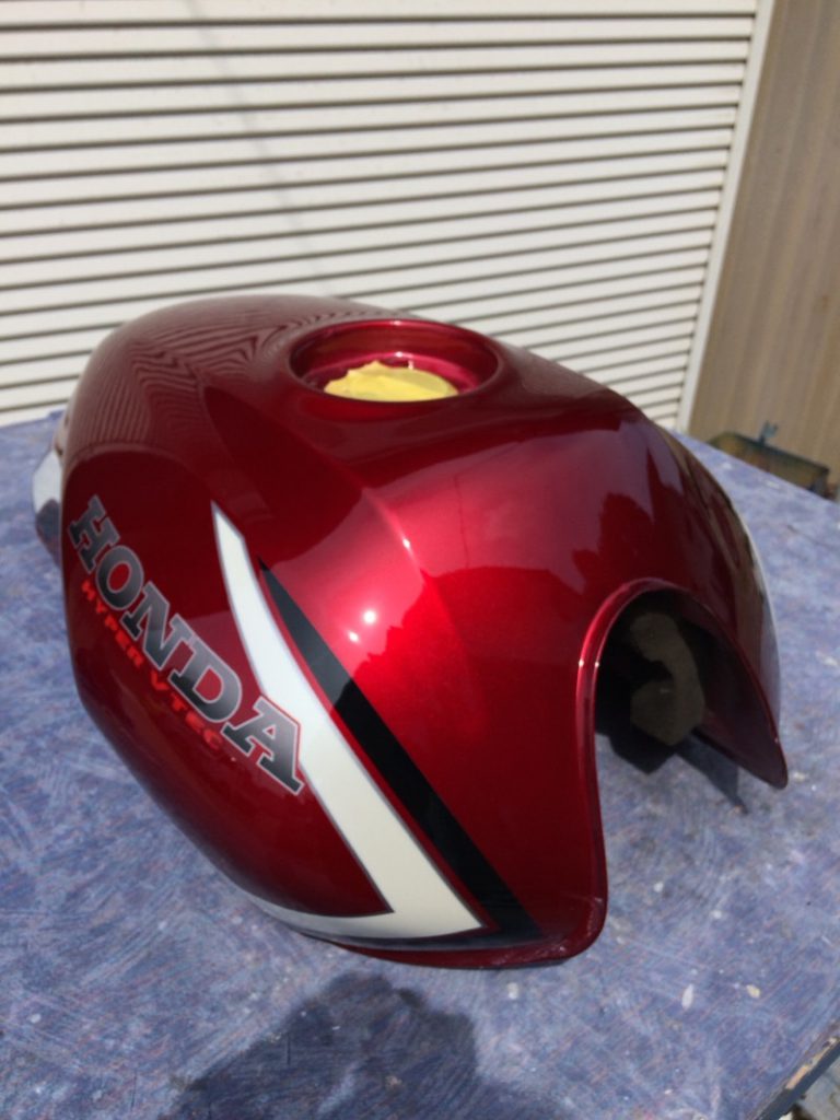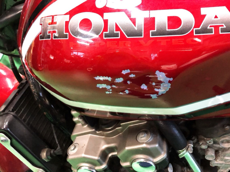 スーフォア、スペル合ってるかな?のタンク補修です。VTEC入ってて新しそうだけどタンク、デカール共に廃盤だそうです。歳も取るわけですね。